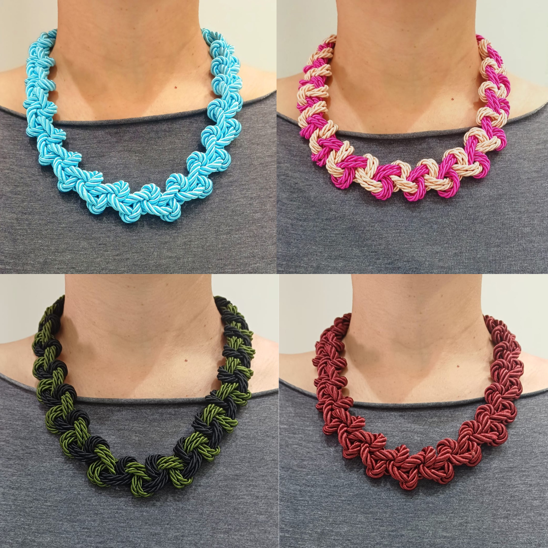 Confeccionado com o tradicional cordão de São Francisco, este colar apresenta uma textura marcante e um caimento impecável – perfeito para mulheres que valorizam estilo e personalidade.